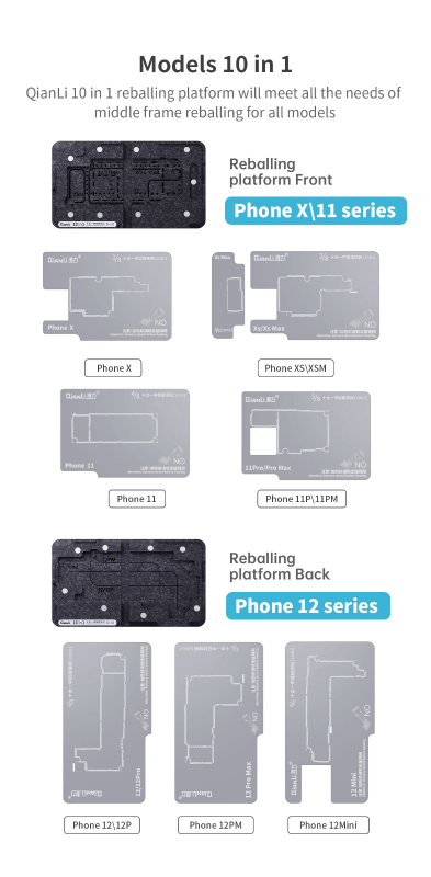 Qianli 10IN1 Middle Frame Reballing Platform IPhone X / 11/ 12 Series